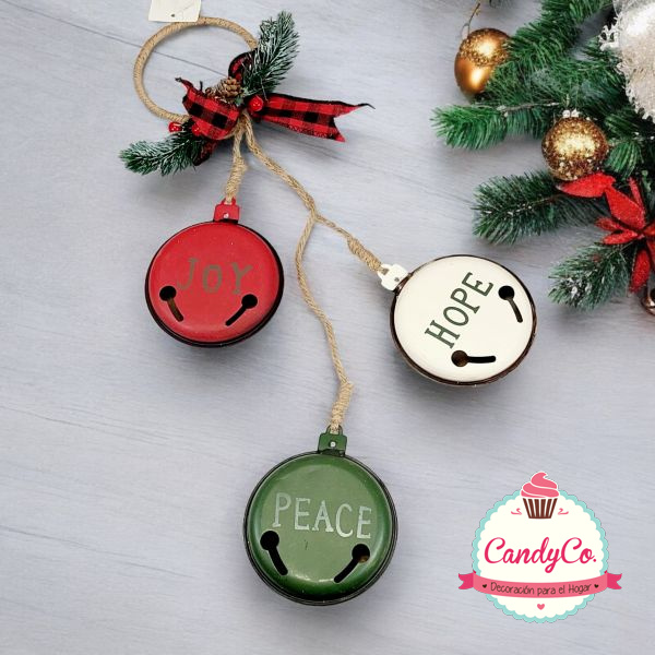 Adorno Móvil Colgante de Navidad Hope, Joy, Peace de Chapa Pintado
