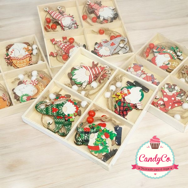 Set de Adornos de Navidad Madera X12 en Caja Varios Modelos
