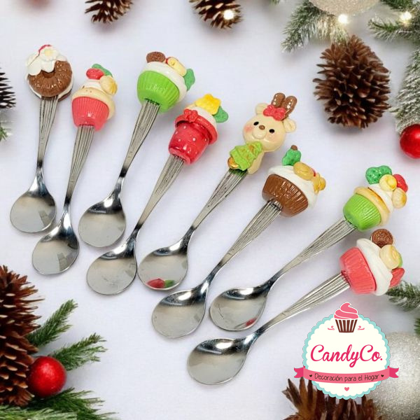 Cuchara Plateada con Aplique de Porcelana Fría Diseño de Navidad Varios Modelos