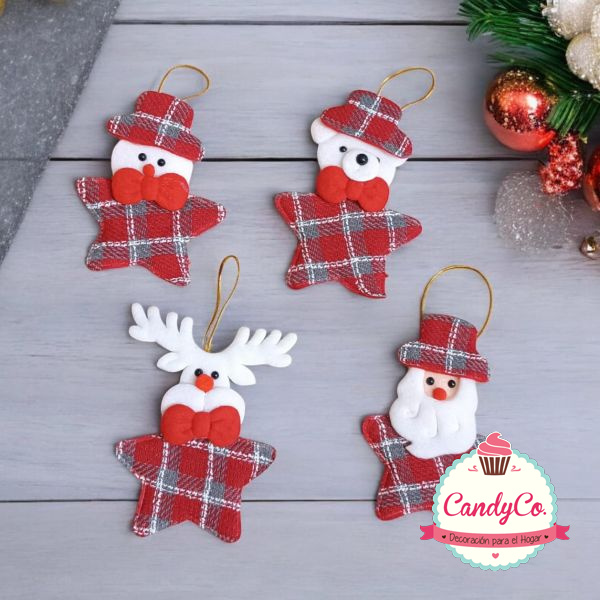Adorno de Navidad Colgante de Tela Estrella con Personajes Cuadriculado