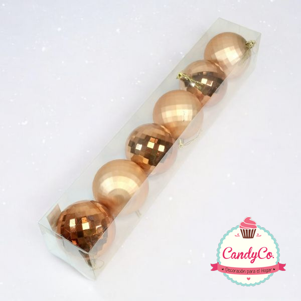 Set de Bolas de Navidad 7Cm Textura Cuadriculada Metalizadas, Mate X6 en Tubo