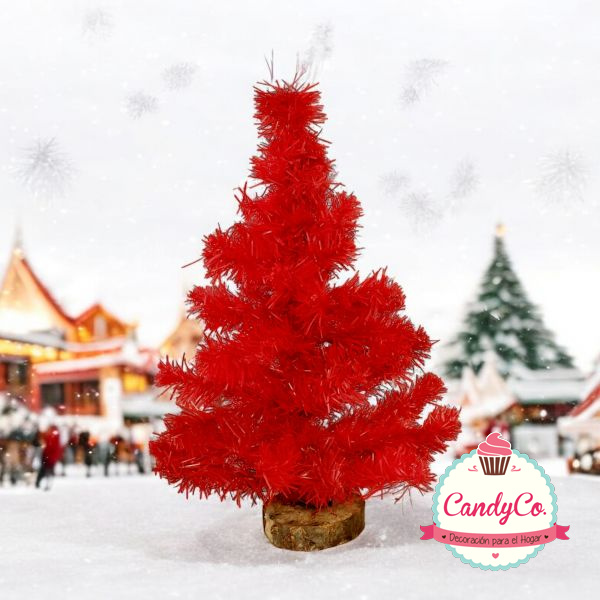 Árbol Pino de Navidad Rojo 60Cm Tradicional con Base Tronco