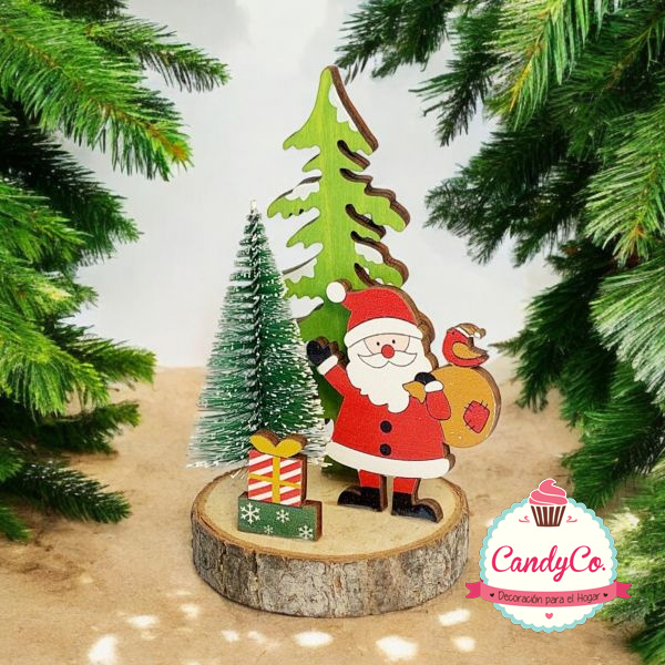 Adorno de Madera Navidad con Pino, Árbol en Tronco
