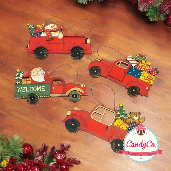 Adorno Colgante de Madera Navidad Auto, Camioneta con Regalos