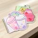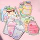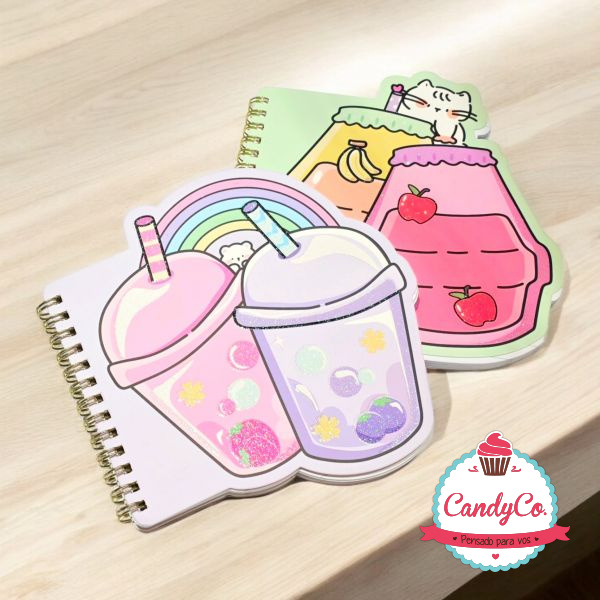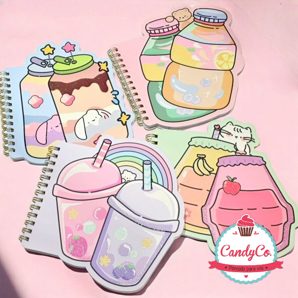 Libreta Anillada Estampada con Diseño de Oso con Malteadas, Botellas, Gato, Conejos con Frascos y Brillos