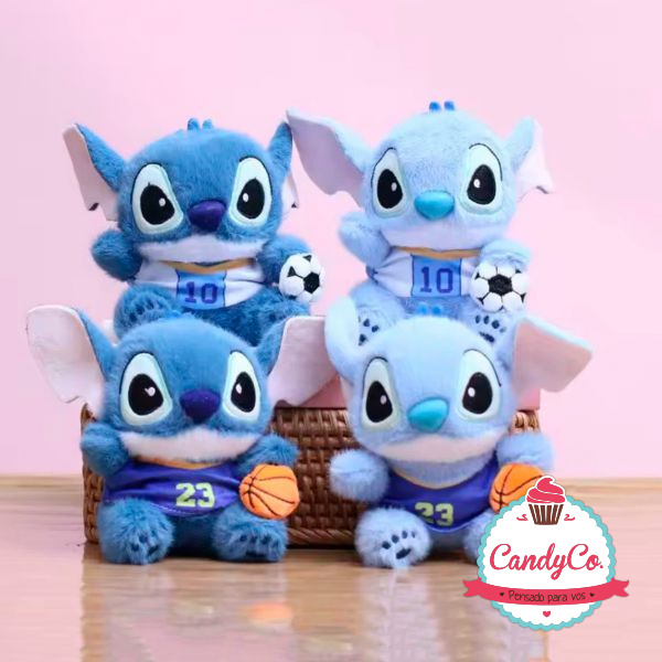 Llavero de Stitch Azul con Camiseta y Pelota de Fútbol, Básquet