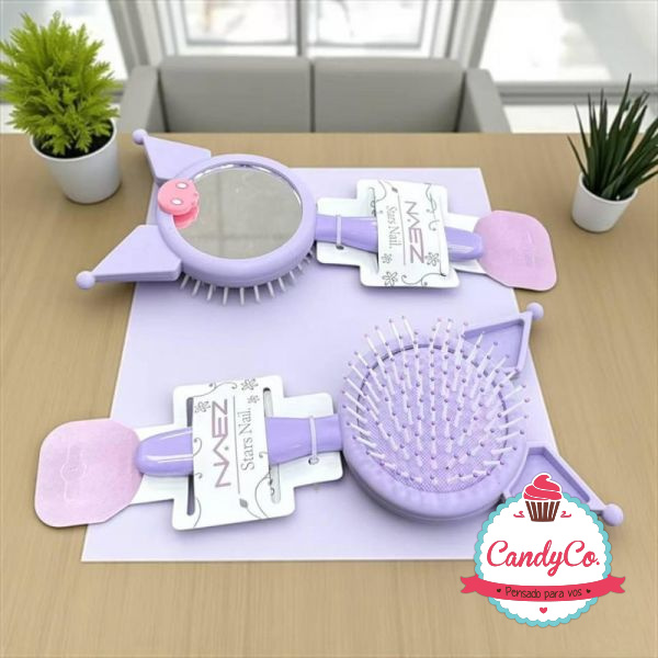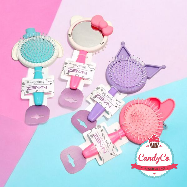 Cepillo para el Pelo Redondo con Diseño de Hello Kitty, Kuromi, My Melody, Cinnamoroll y Espejo