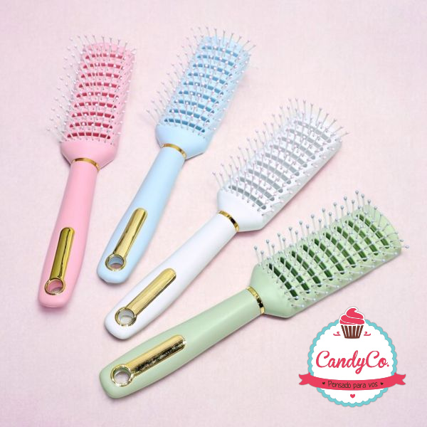 Cepillo para el Pelo Rectangular Color Pastel con Detalles Dorados