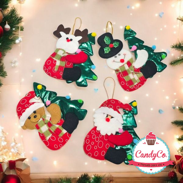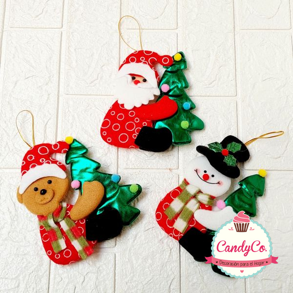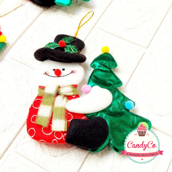 Adorno Colgante Muñeco de Navidad con Árbol Metalizado
