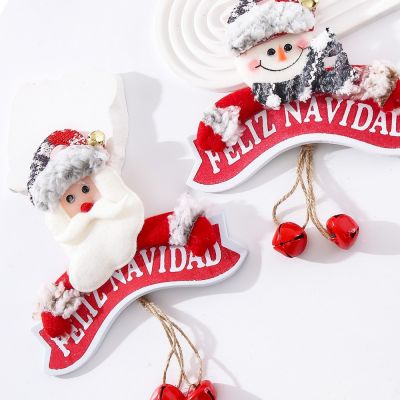 Adorno Cartel Colgante Feliz Navidad con Muñeco y Dos Cascabeles