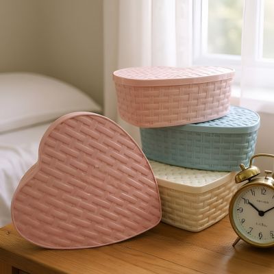 Caja de Plástico con Diseño de Mimbre y Forma de Corazón con Tapa