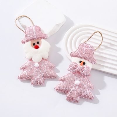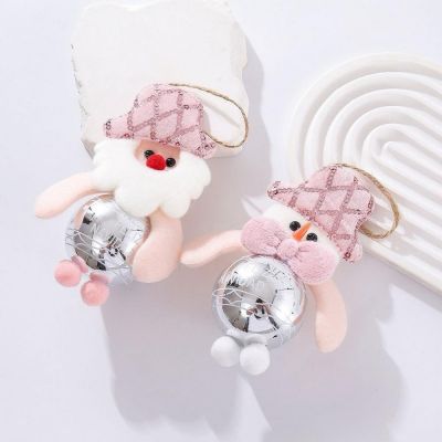 Adorno Colgante Muñeco con Cascabel Feliz Navidad de Color Rosa y Plateado