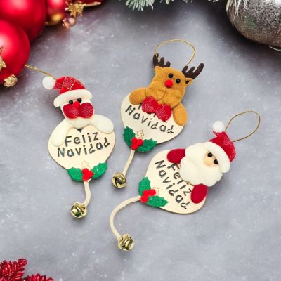 Adorno Cartel Colgante Feliz Navidad con Muñeco y Dos Cascabeles